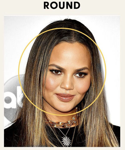 Celebrities with this face shape: Chrissy Teigen, Elizabeth Olsen, Jennifer Lawrence, Ginnifer Goodwin